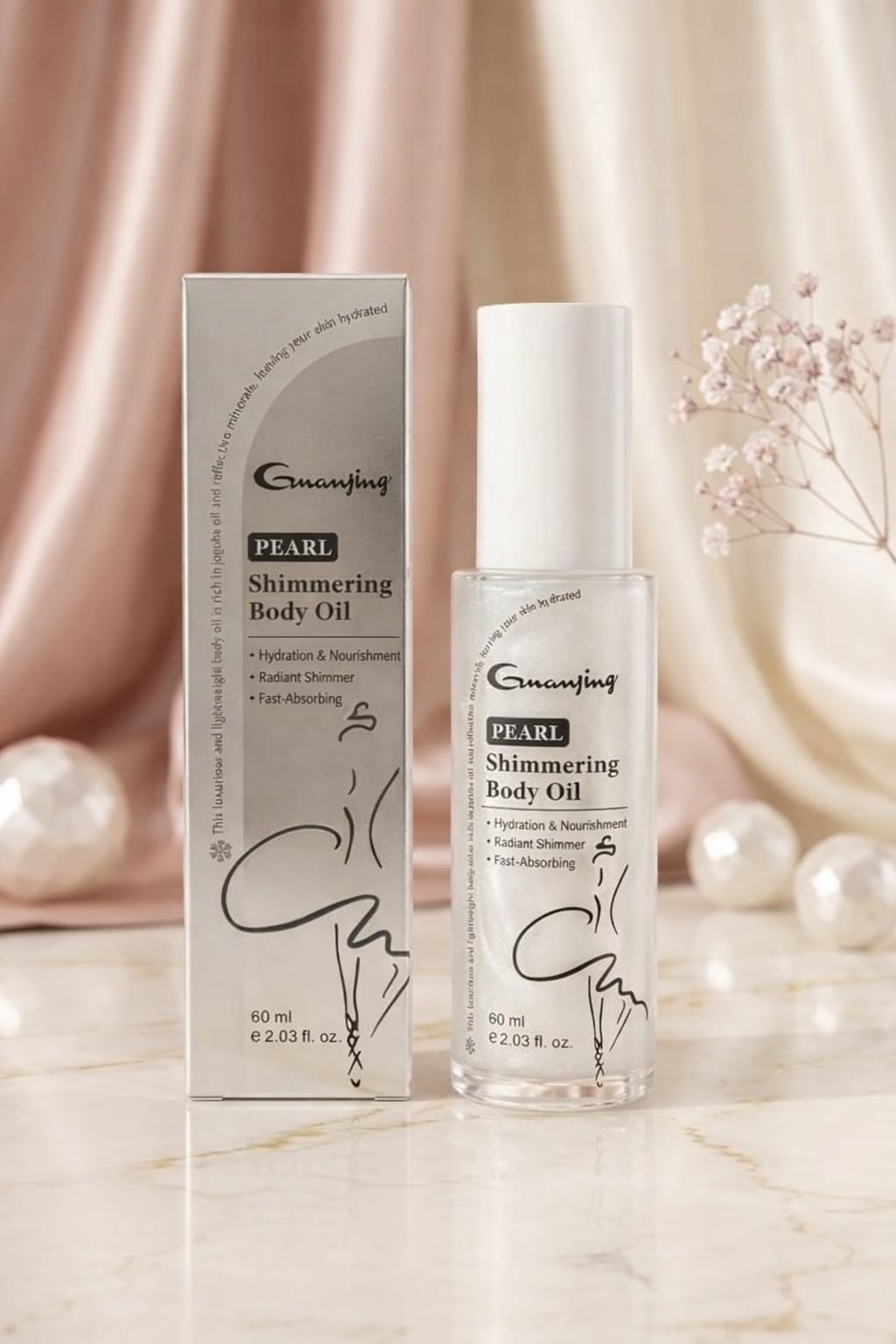 Nutre, ilumina y suaviza tu piel con el Aceite Corporal Perla GUANJING, un tratamiento corporal diseñado para brindar hidratación profunda y un acabado radiante.
